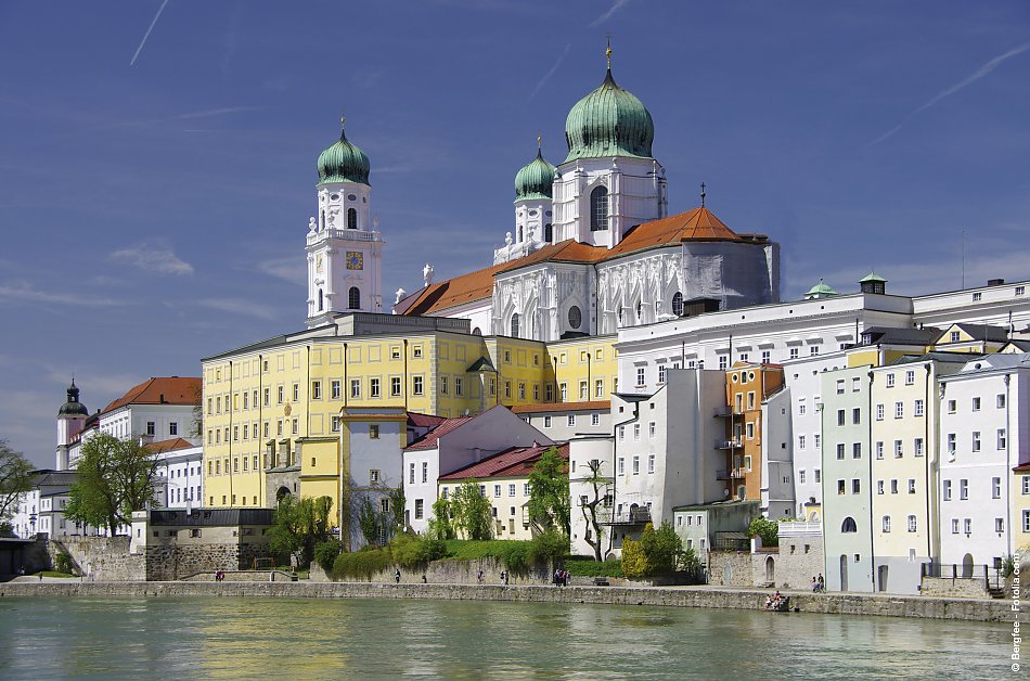 Vormittags Stadtführung durch Passau: malerische Altstadt, Residenzplatz und Dom St. Stephan (Außen). Anschließend gemütliche Schifffahrt – beste Blicke auf die Zusammenflüsse von Donau, Inn und Ilz. Freizeit für Kaffeehaus oder Uferpromenade. Rückfahrt nach Windorf.