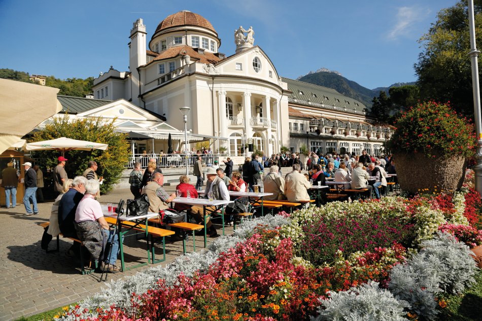 Höhepunkt der Reise: Ausflug nach Meran zum traditionellen Traubenfest mit festlichem Umzug (am 18.10.). Mit Reiseleitung entdecken Sie die Kurstadt und erleben den farbenfrohen Festumzug mit Musik, Trachtengruppen und geschmückten Wagen. Anschließend bleibt Zeit für einen Spaziergang auf der Passerpromenade oder durch die Laubengänge. Rückfahrt zum Hotel, Abendessen.
